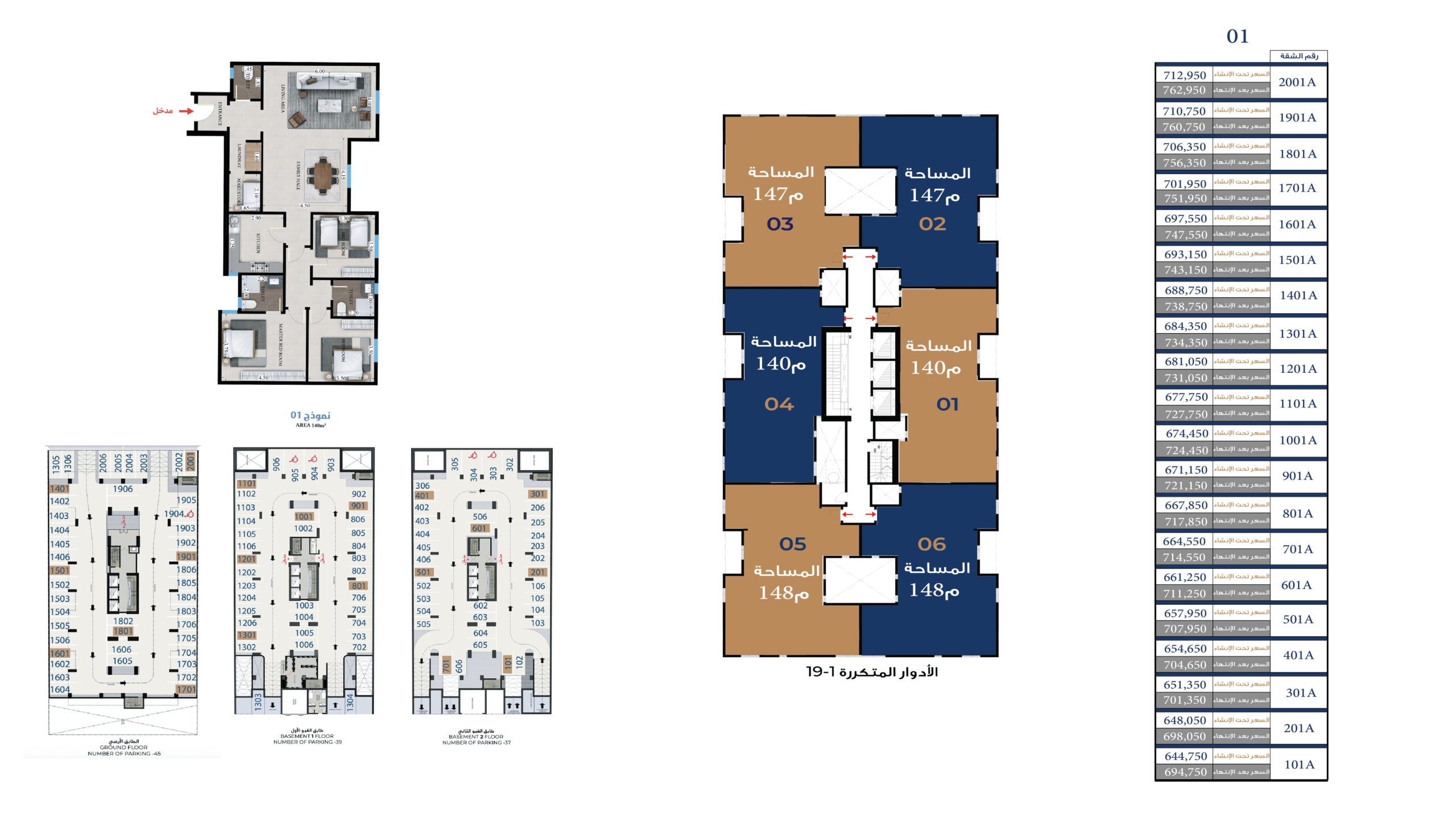 اضغط على رقم الشقة لعرض تفاصيل الشقق